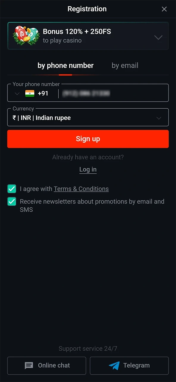 To make your experience even more joyful, Pin-Up offers a 100% welcome bonus of up to 450,000 rupees in addition to 250 bonus spins. You have three days to wager 20 times the bonus amount after it is enabled. You will earn a 120% bonus if you make the first deposit within the first hour after registration. On the other hand, your bonus will be 100% if you make your deposit more than an hour after the initial deposit. To be avail the offer, your initial deposit must be at least 400 INR. In addition, you will get + 250 FS spread over 5 days if you deposit 2,000 INR or more.